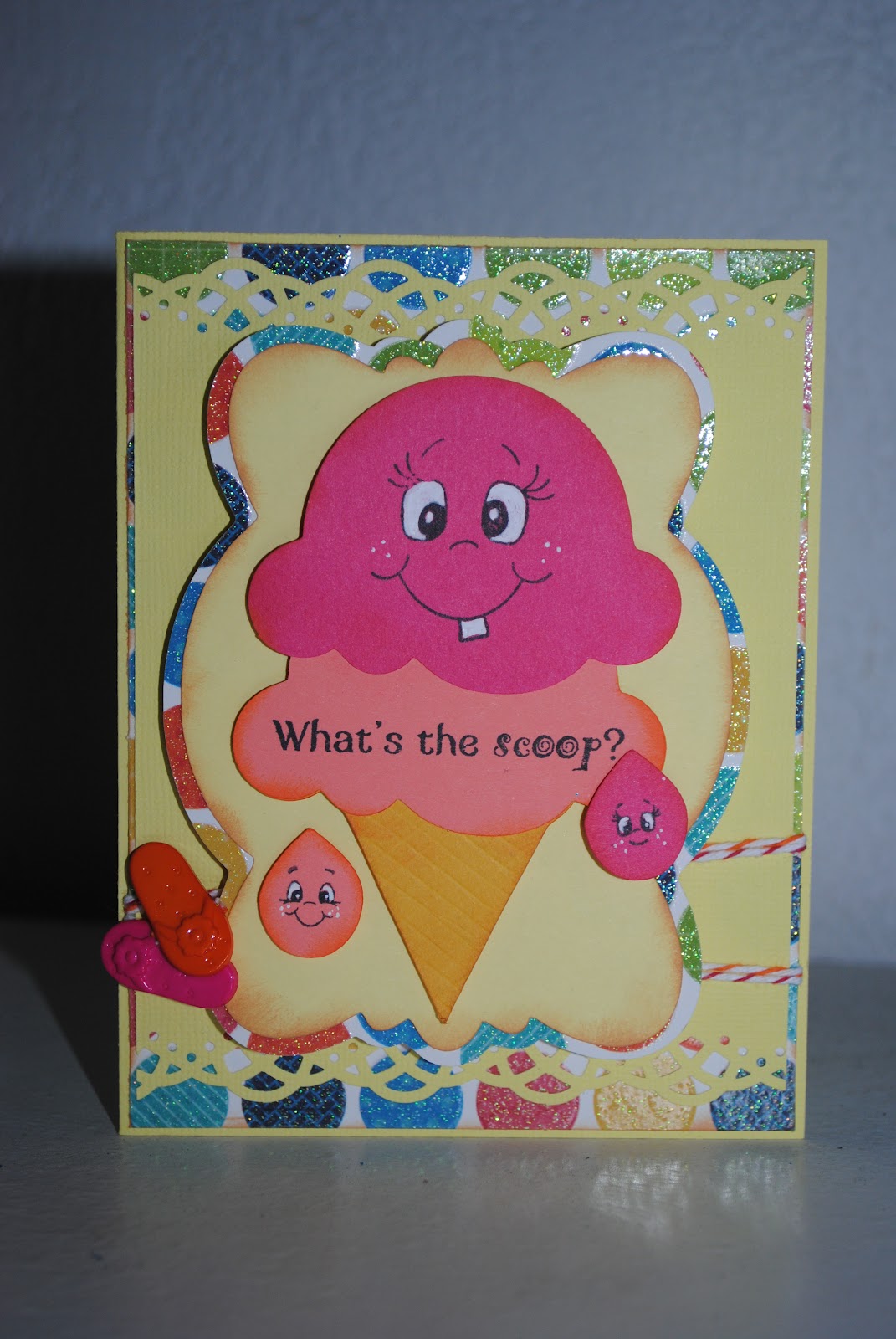 Oh my goodness! This is just way to cute!!!! I so love your yummy ice cream cone with the darling face!!! Love the papers and colors you used. Great idea using your score board to make the design on the cone!! Thank you so very much for joining our Cardz TV Stamps 'Anything Goes' challenge and for playing with us at Paper Playtime!!!! :)